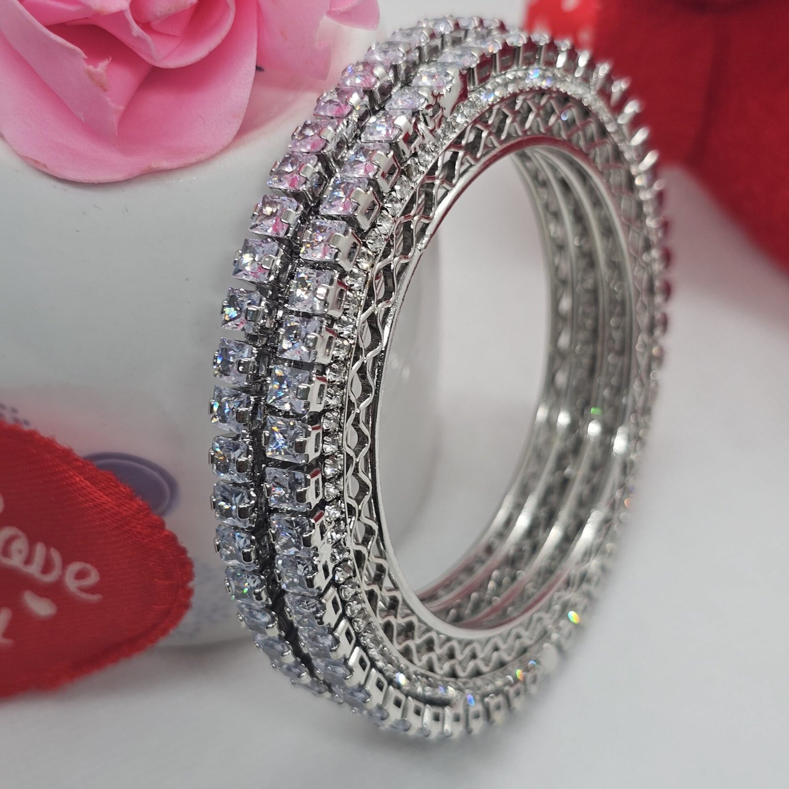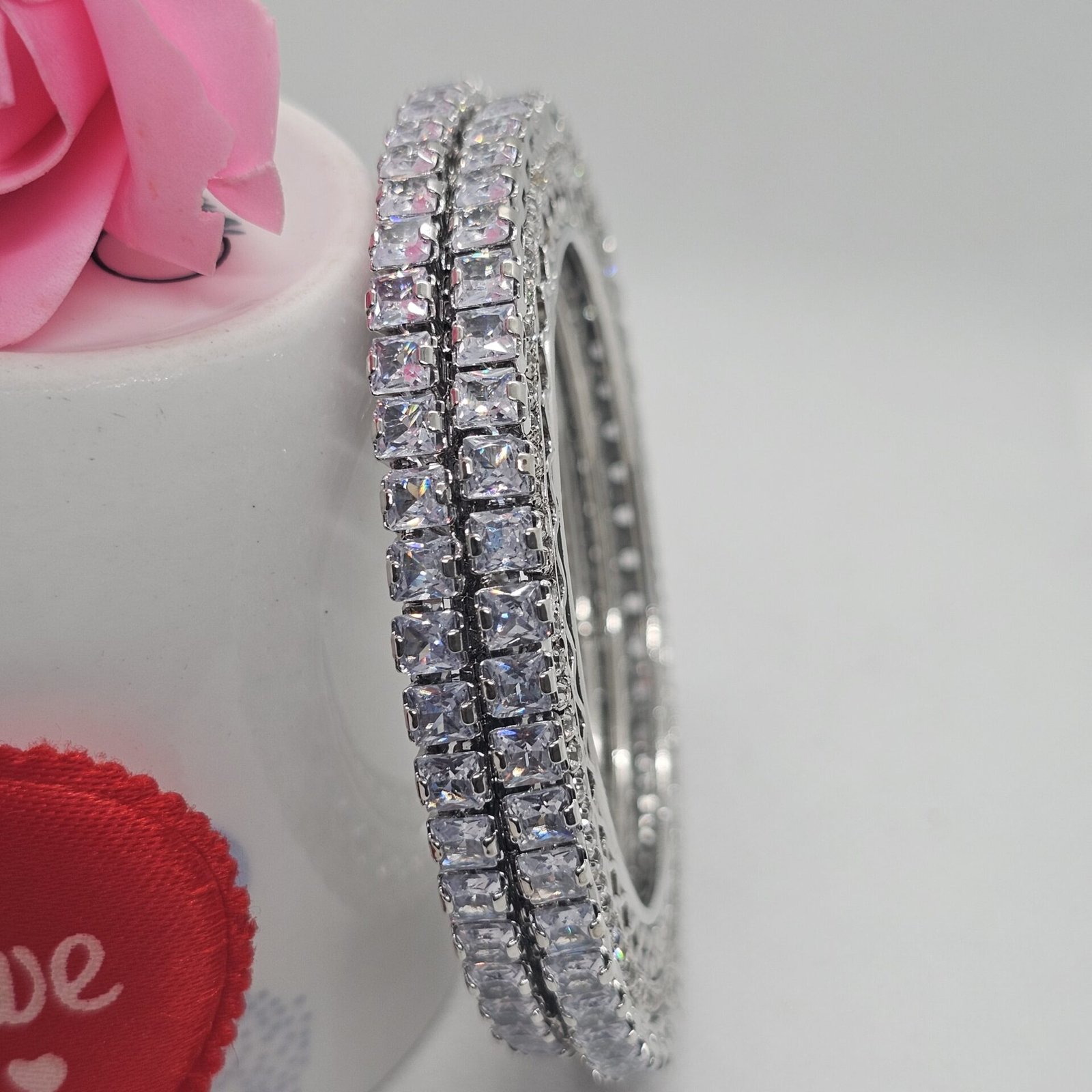 AD SQUARE KHOBA 2 PIC RODIUM PLATED BANGLES SET (105-1251)