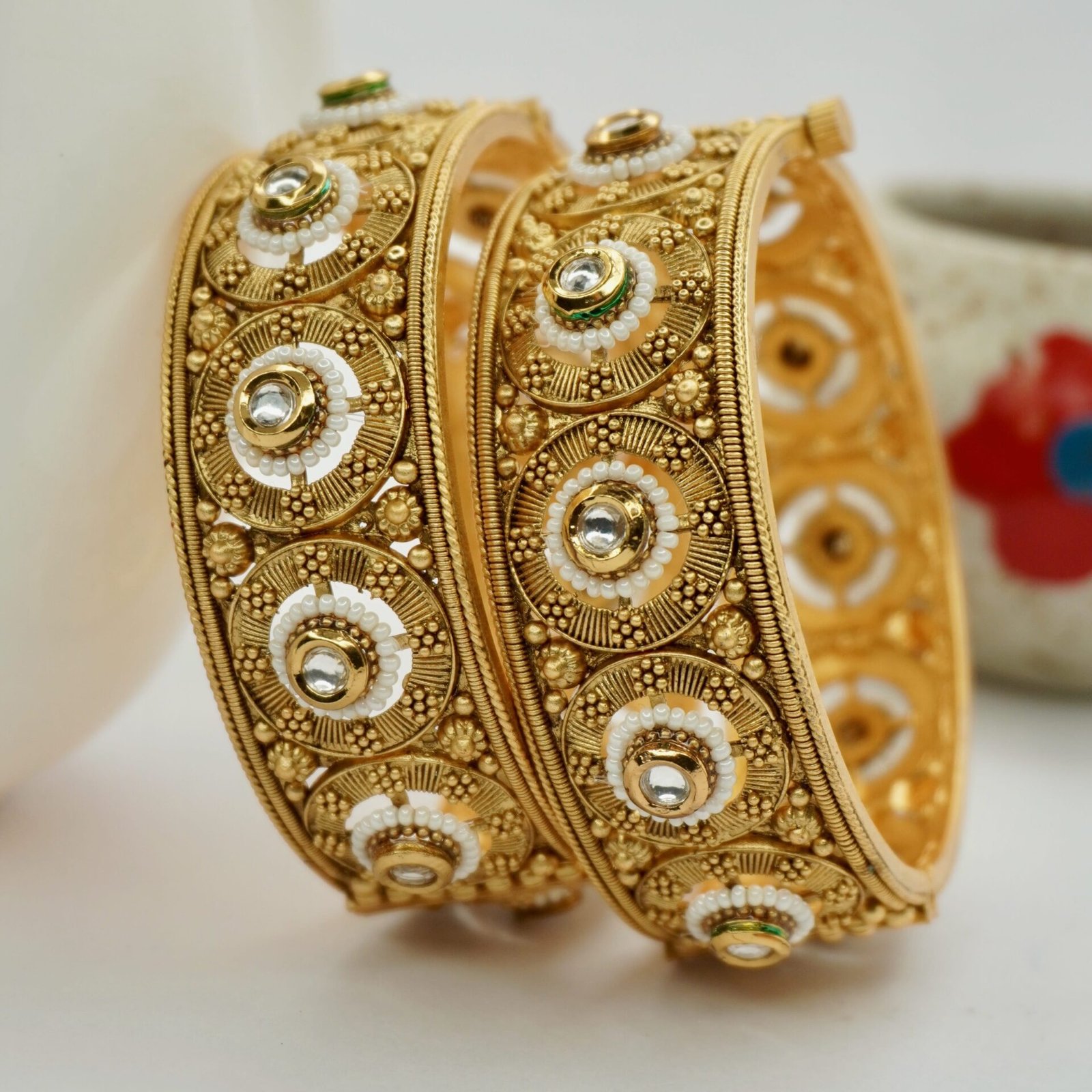 Kundan Pearl Copper Screw Bangles (2040)