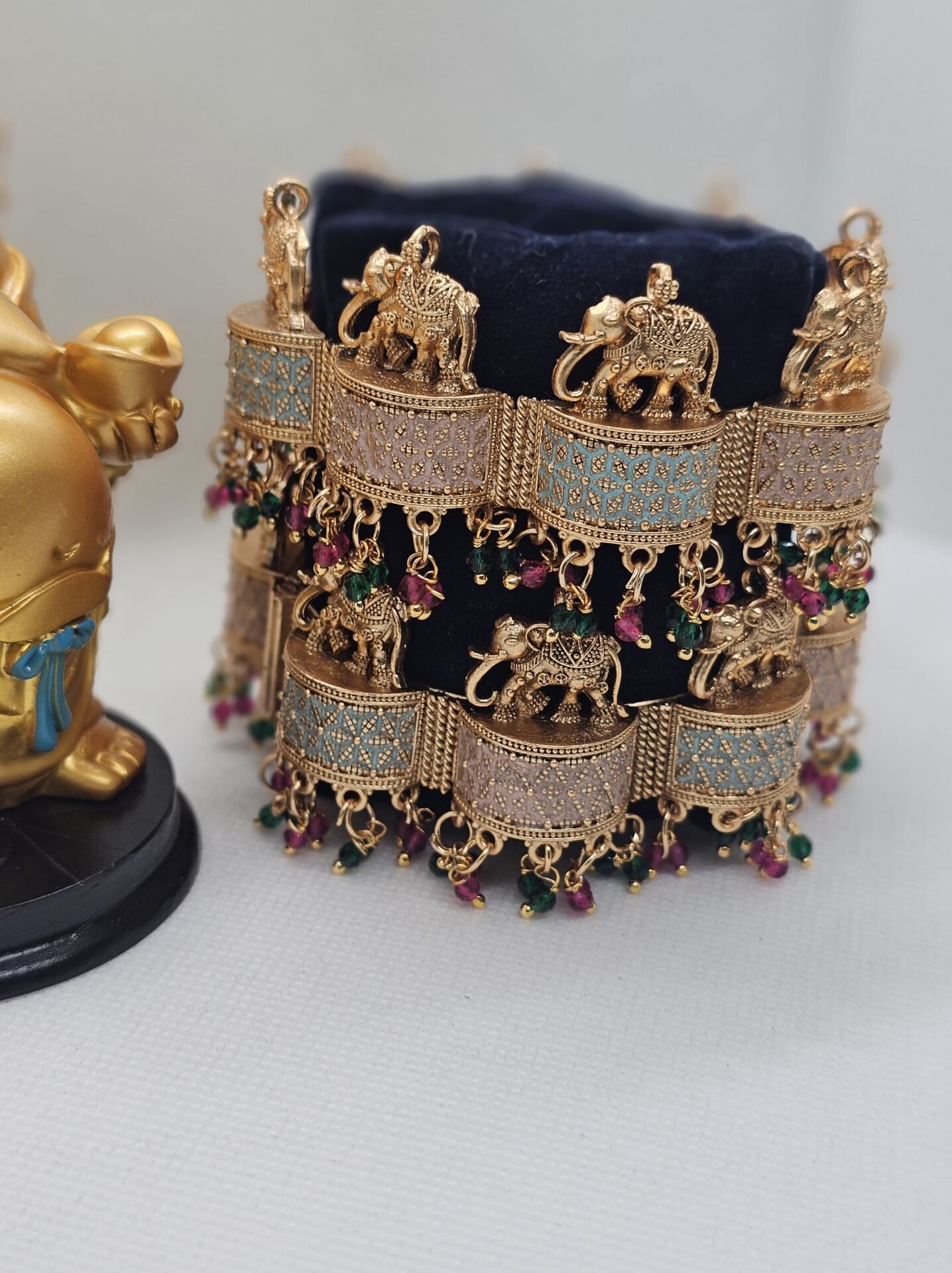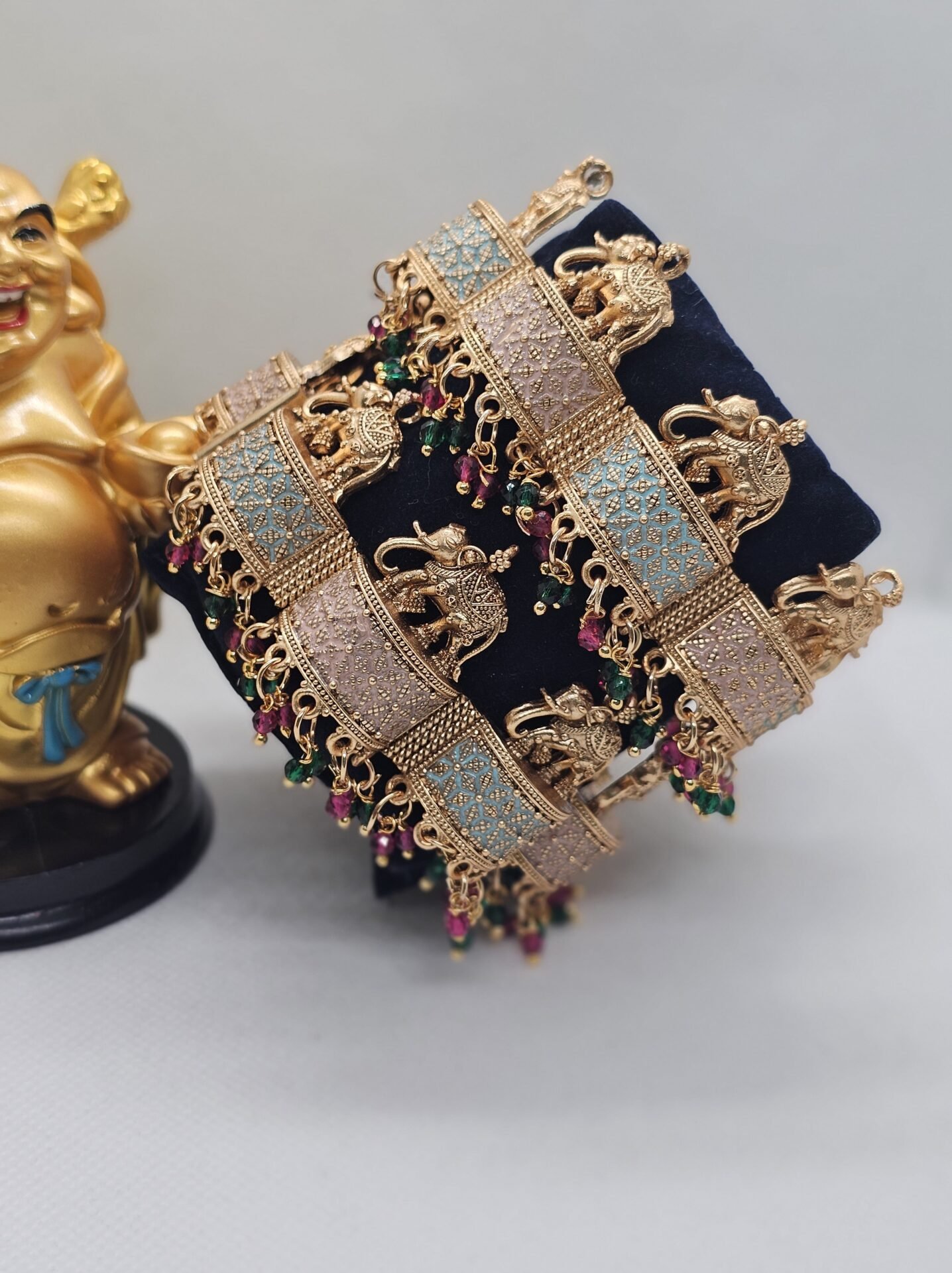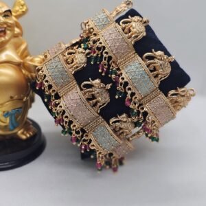 Mint Pink Meena Elephant Bangles with Gungri (112-4210)