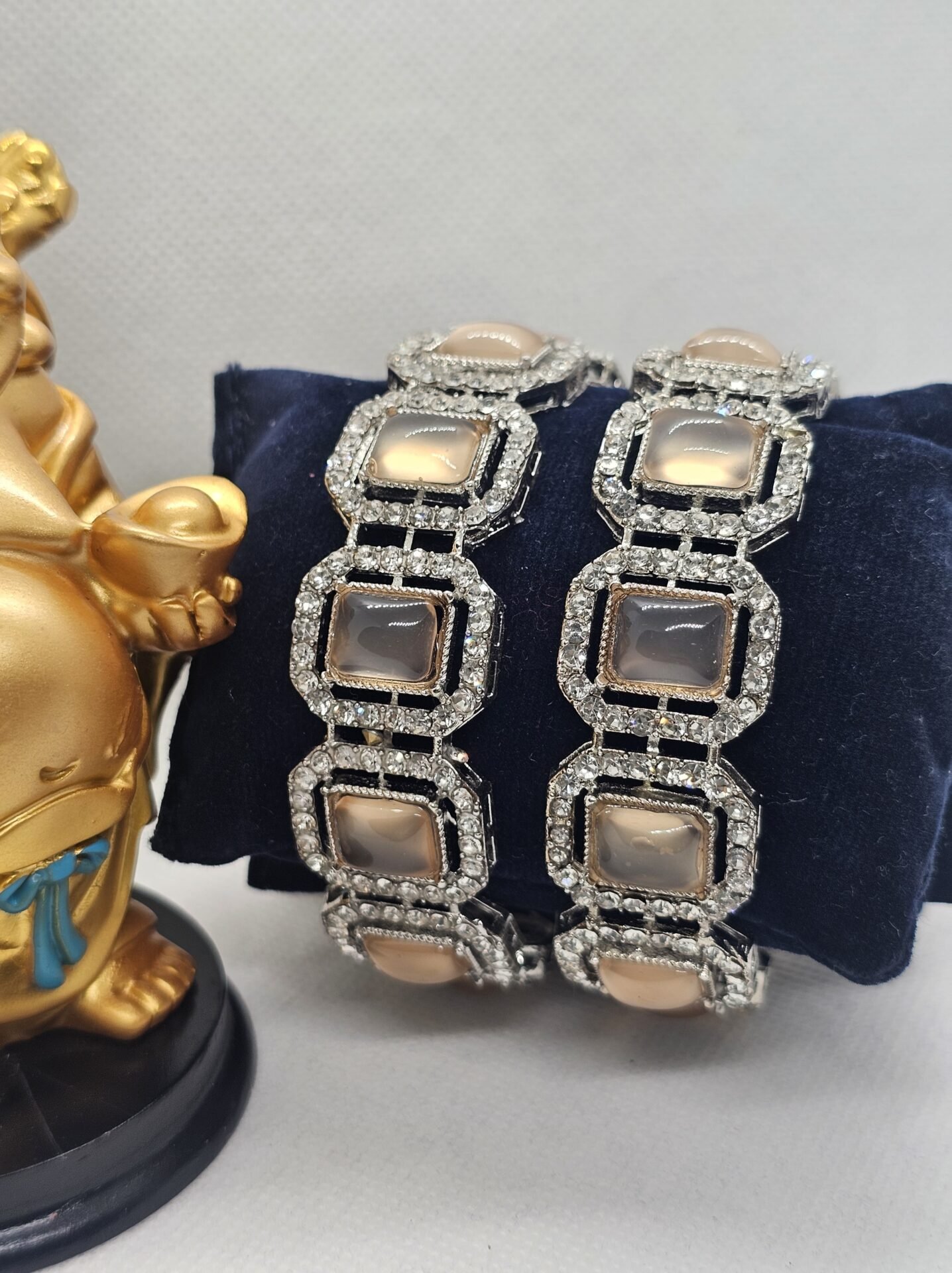 Rodium Plated Light Pink Colored AD Bangles (86-1029)