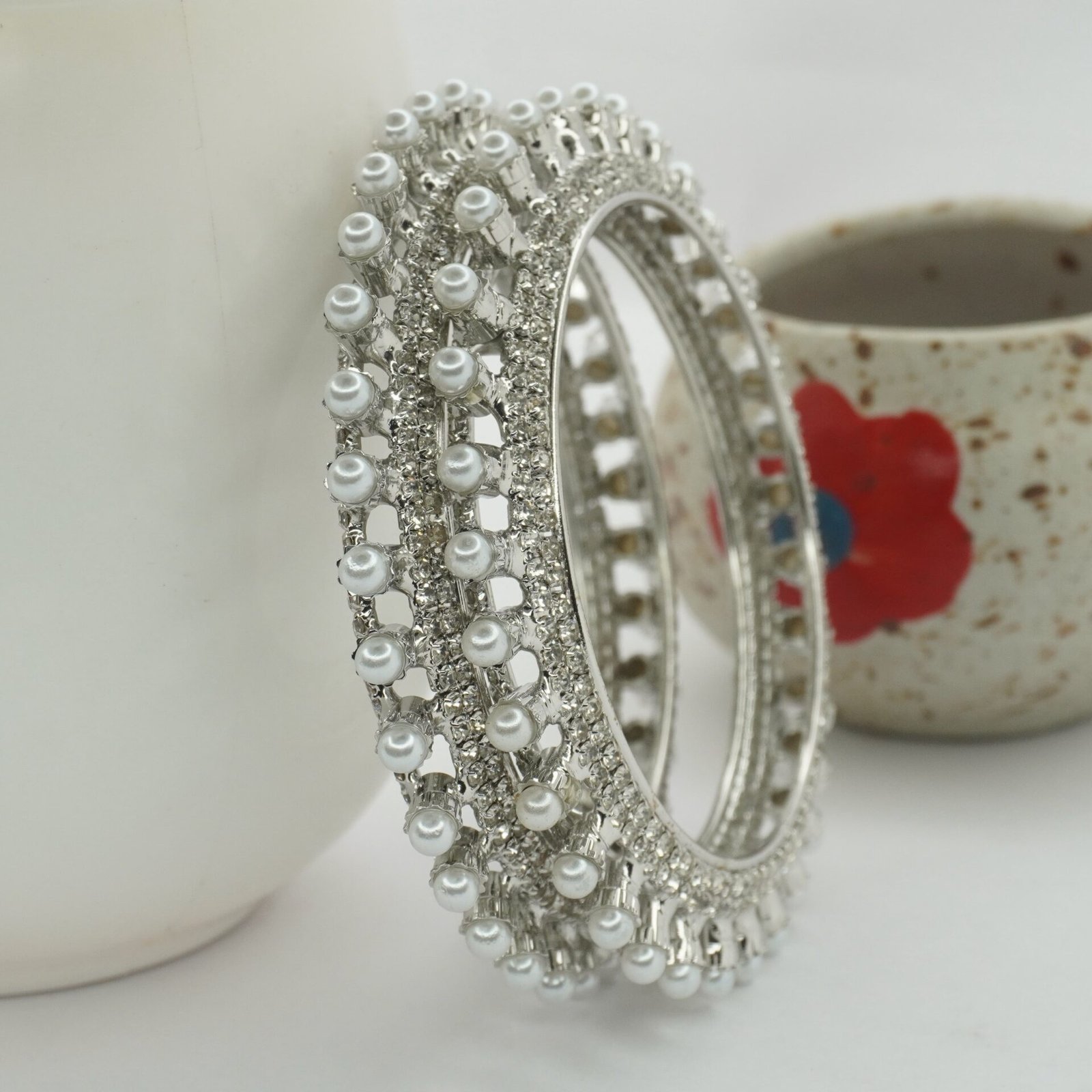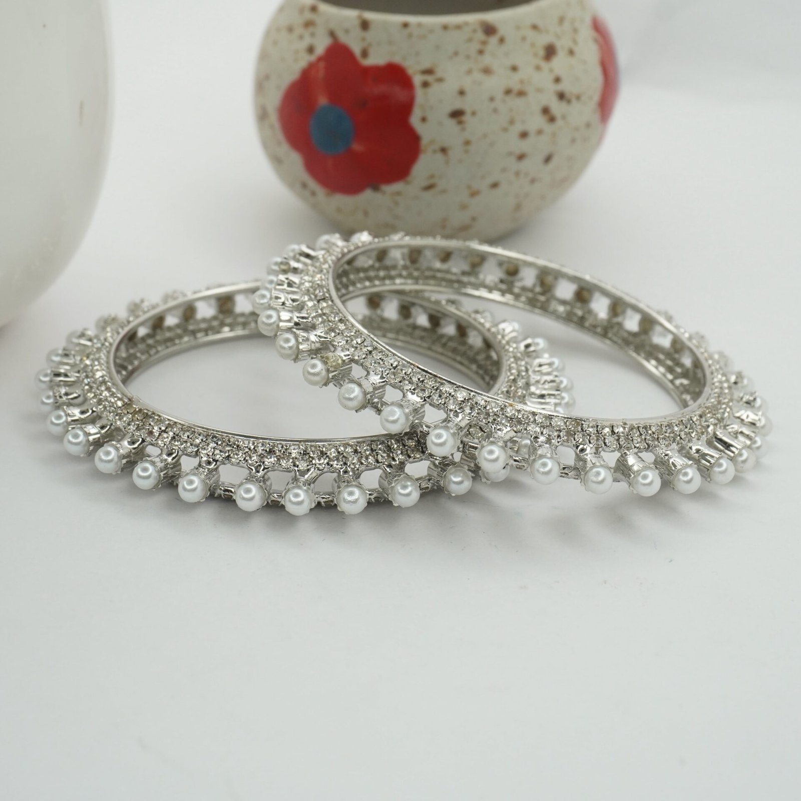 Rodium Plated White pearl Chura bangle (2053)