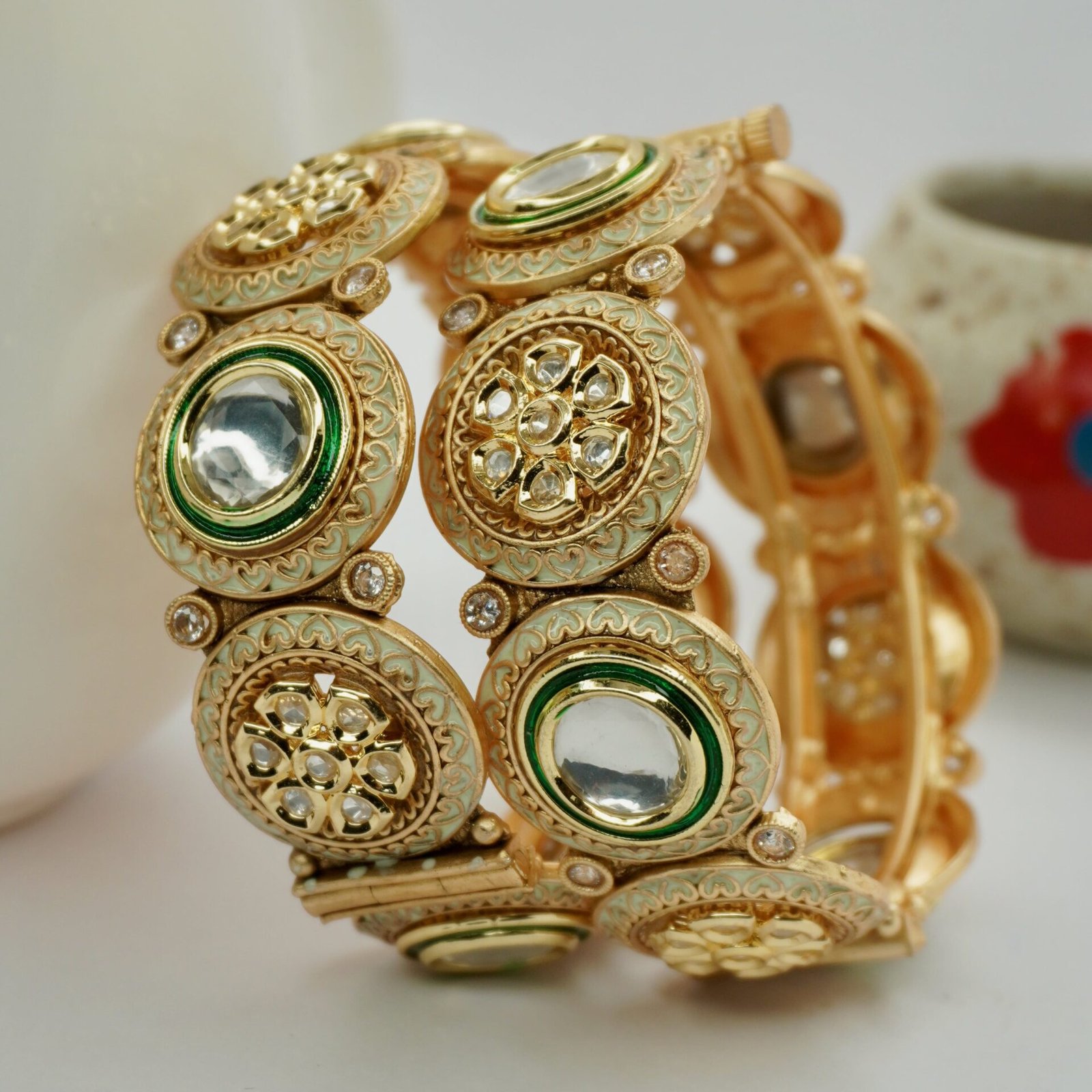 Round Big kundan Light Meena Designer Bangles Set (2009)