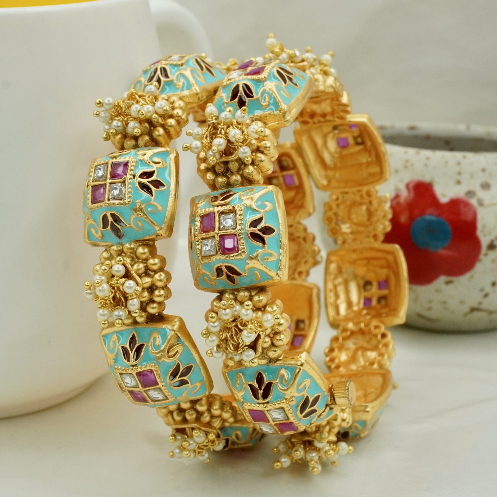 Ruby AD Sky Meena Square with Gungri Copper Bangles (1971)