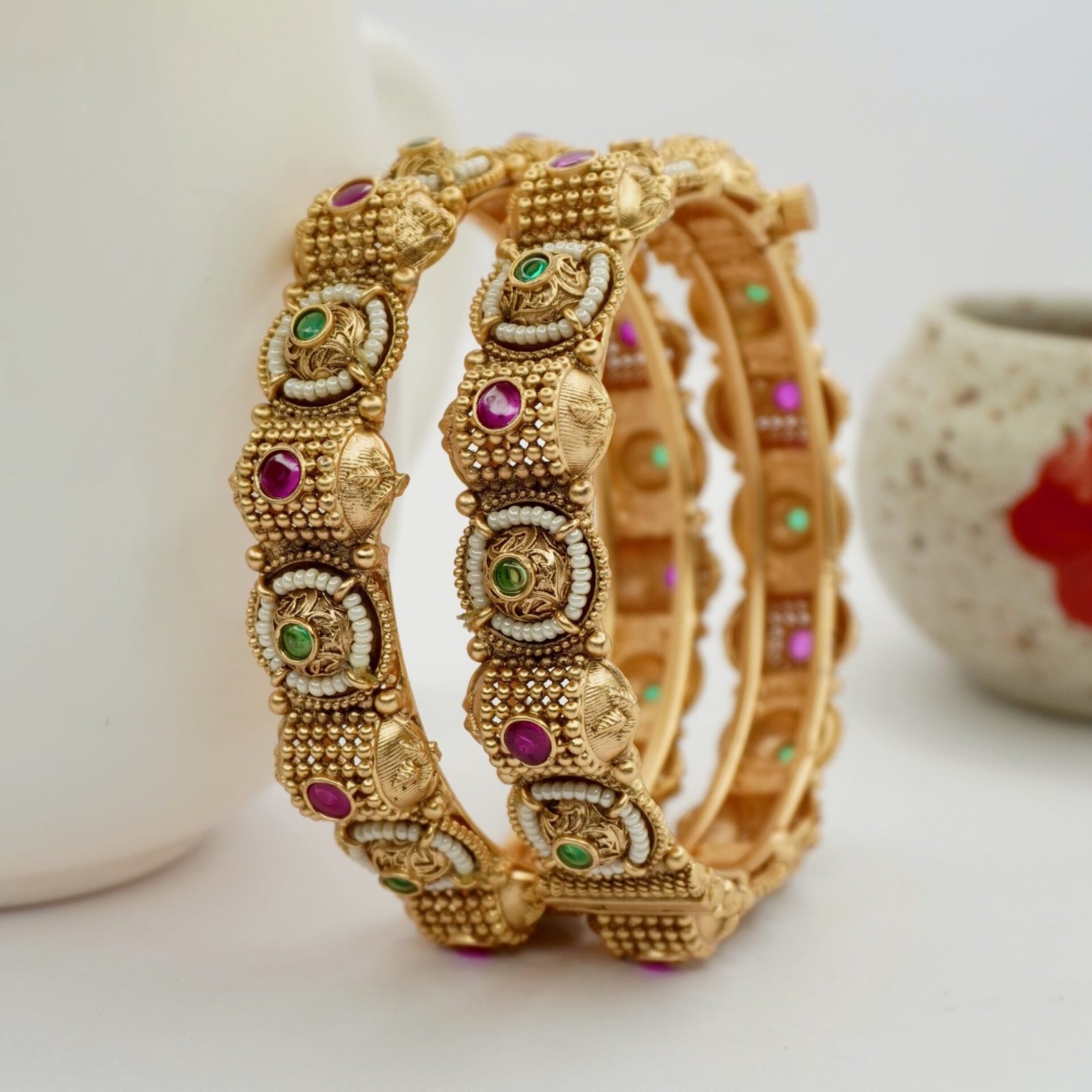 Ruby Pearl Mat Finish Copper Bangles (2012)