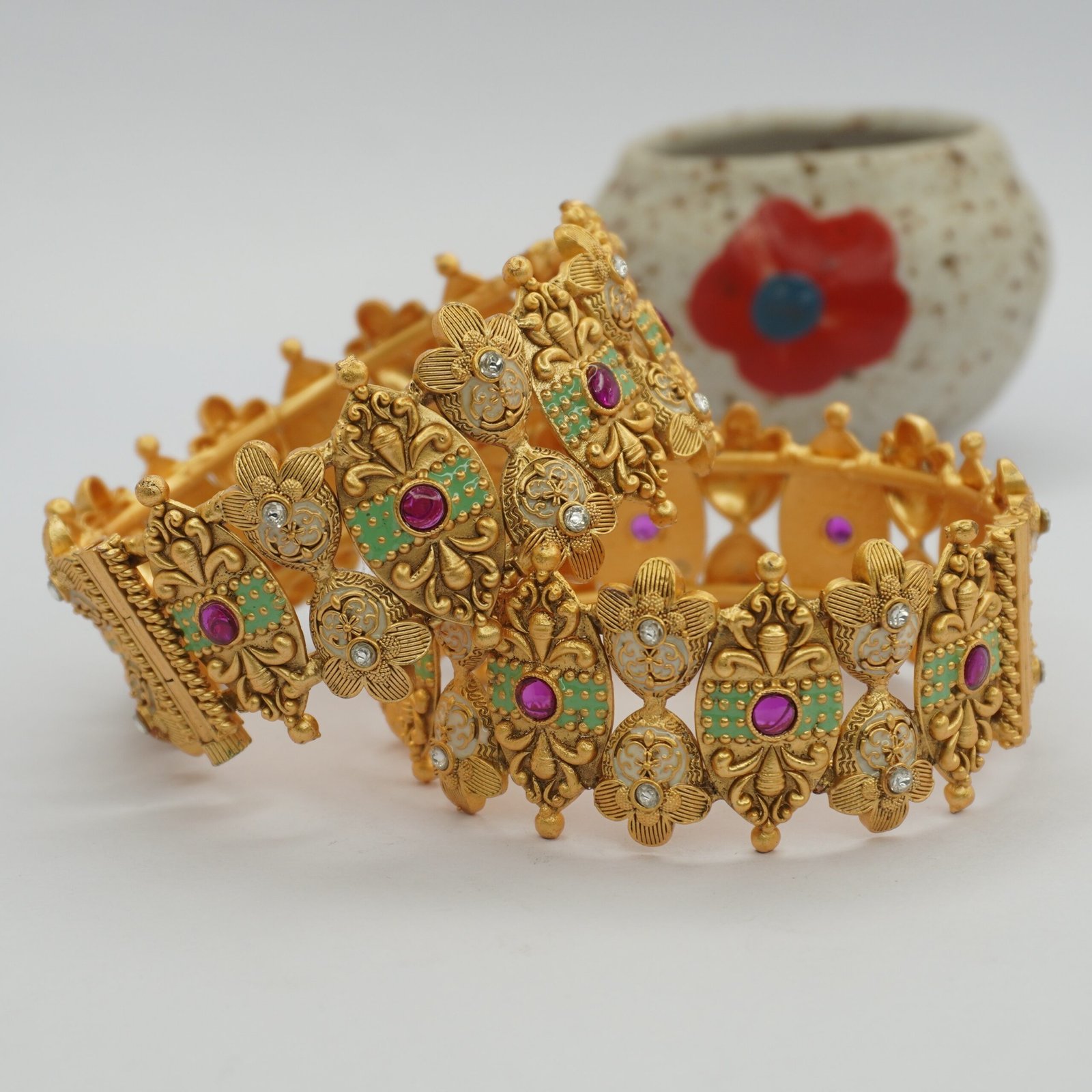 Ruby Studded gold plated Copper Bangles set (1890)