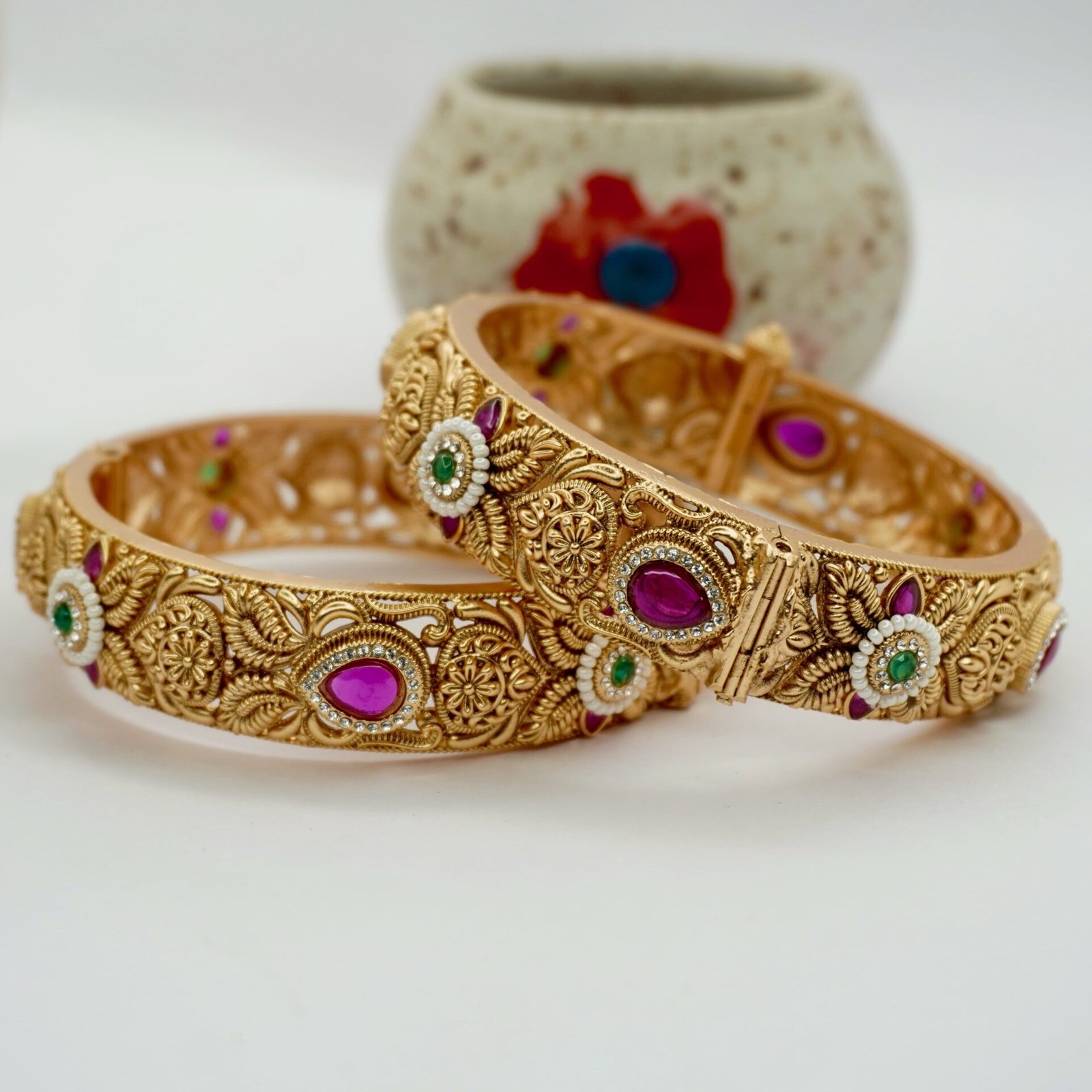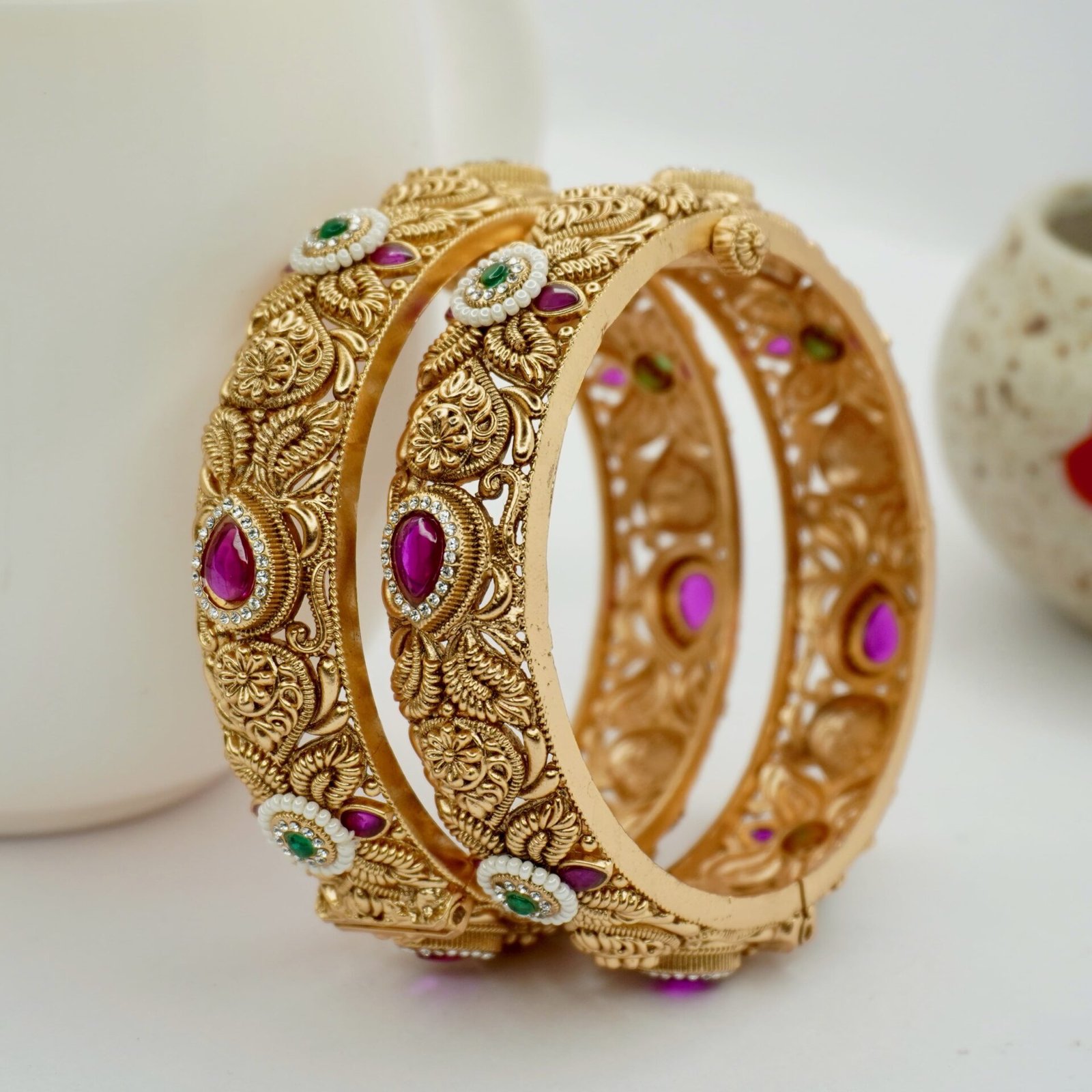 Tilak Ruby Green Pearl Round Screw Bangles (2019)